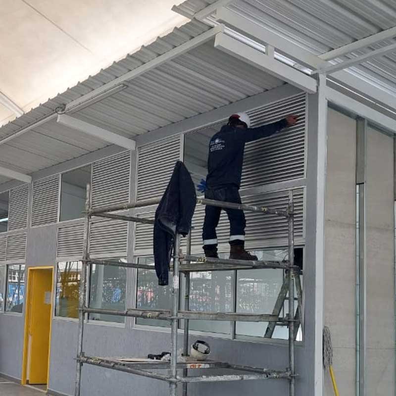 4. Instalación de nuevas estructuras en aluminio y vidrio: Montaje de ventanas y refuerzos estructurales.